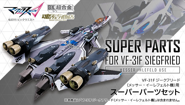 繼「VF-31J 齊格菲 超級背包擴充套件」後,日本 BANDAI 萬代玩具公司收藏玩具事業部日前再度發表了 VF-31F (梅薩機)專用的「DX超合金 VF-31F 齊格菲(梅薩機)專用 超級背包 Super Parts 擴充套件」(DX超合金 VF-31Fジークフリード(メッサー・イーレフェルト機)用スーパーパーツセット)預計於 2017 年 10 月發售的消息。