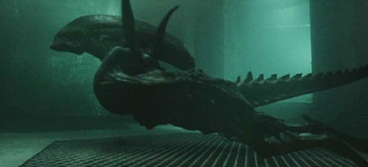 雖然是以人類為宿主而誕生的異形 但卻比其他的人類異形具有更多的其他動物特徵,口中可直接吐出強酸攻擊對手,此外牠尾部具有類似鰭的突起構造,使其能在水中進行不輸在陸地上的靈敏快速活動~