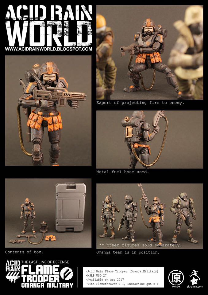 近年來掀起徵兵熱潮的超人氣3.75吋科幻軍武人偶系列《酸雨戰爭》,全新推出的敵對勢力“奧曼加”(Omanga),繼首波推出了地獄部隊(Abaddon Trooper)與奧曼加傀儡兵(Abaddon Puppet)之後,最新作宣布將推出強力的「重生士兵」(Reborn trooper)與「火焰士兵」(Flame trooper)。