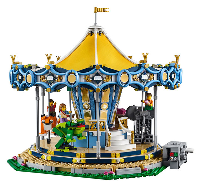 這次的初始設計必須要手動操控,但能夠藉著小馬達外接動力組(要另外購買),達到全電動的效果!到時候讓兩個旋轉木馬一起轉動,一定超級夢幻的啊!樂高的復刻策略非常厲害,相似的題材但外型更漂亮、也多了不同設計,創造出全新的感覺,例如之前的摩天輪系列,LEGO10247與LEGO4957,新版的10247更溫馨、更有置身於遊樂園的感覺。
