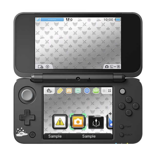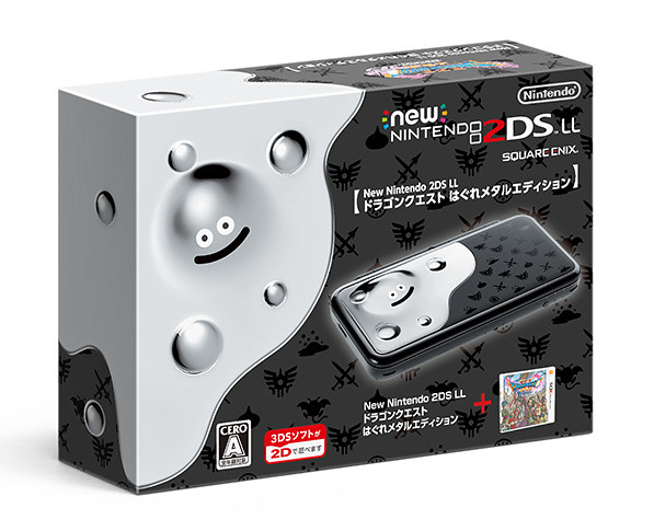 任天堂的「New Nintendo 2DS LL 勇者鬥惡龍 離散金屬 Edition」則將今日發表的最新主機「New Nintendo 2DS LL」與人氣魔物「離散金屬」結合,上蓋部份鑲入立體造型且帶鏡面光澤的離散金屬,整台主機也以時尚簡約的霧面黑成形,上頭印有羅德文章、武器、魔物...等浮雕圖樣,在十字鍵的左下角也印有離散金屬的可愛圖樣。