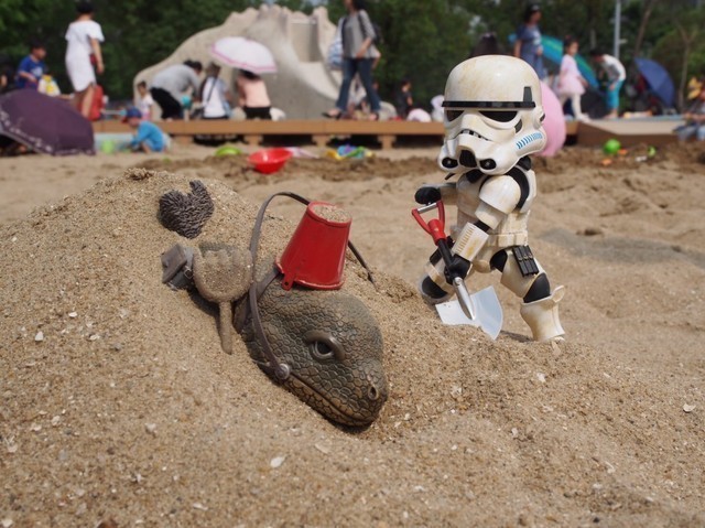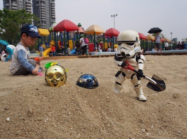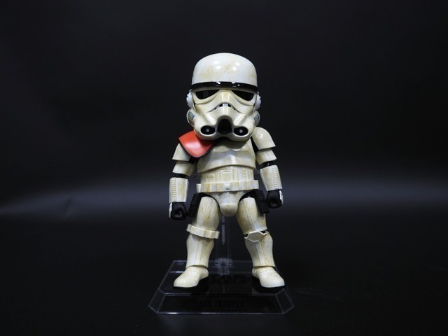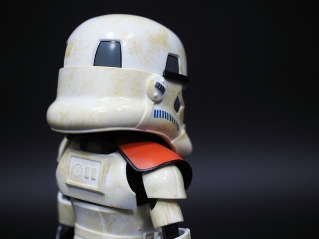 首先先來看看沙漠兵,相較於一般星戰中的白兵,這款沙漠兵的身體使用了舊化的效果呈現身上的汙損,看起來感覺就在沙漠中奔波許久搞得全身歷經風霜!