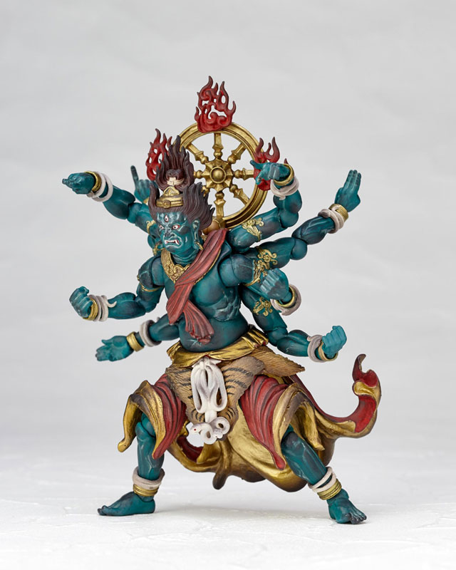 以極佳的造型、塗裝精彩地將日本傳統藝術、工藝的造型重現,搭配上靈活的可動性而深受許多玩具人喜愛的海洋堂『TAKEYA式自在置物』系列,才公開將以復活彈推出「不動明王 黄不動」以及「不動明王 青不動」兩波的可動作品之後,這次將以"復活第三彈"來繼續推出之前已經推出過的「軍荼利明王」!