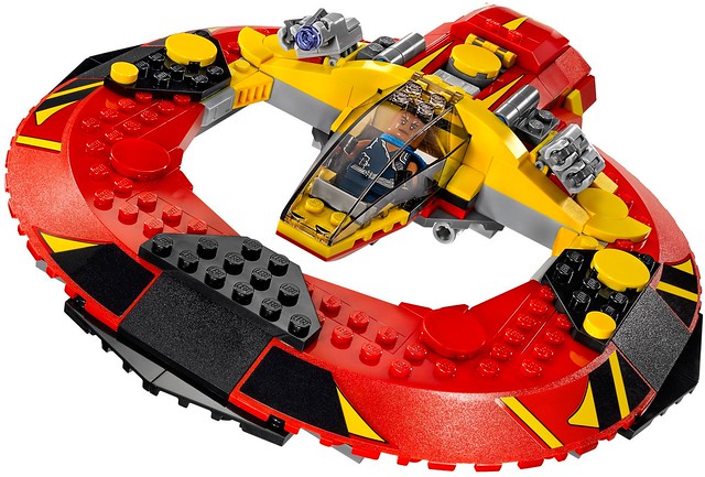 這次兩組set 的索爾在印刷上有些許差別,競技場那版盔甲上多了紅色圖騰,更是能近距離觀賞海拉的誇張頭盔,真的是超級狂~(暗黑屬性瞬間點滿XD)令小編眼睛一亮的是「宗師」(Grandmaster)的臉部印刷,淡藍色的眼影與嘴巴下方那條藍線也完整還原,真的超精緻的;除了人偶細節之外,競技場裡頭可以把人偶放在門後的設計十分有意思,女武神圓環形戰鬥機的外觀也非常特別!