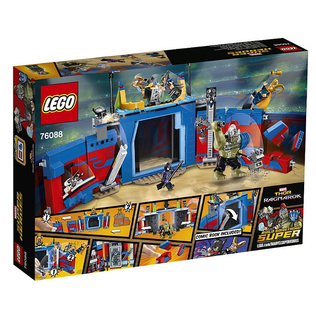 LEGO 76084與LEGO 76088分別是美金49.99、59.99,兩個盒組的人偶都超級豪華!有點買人偶送場景的味道啊~除了超帥氣的競技場版浩克,常人版的布魯斯班納外,還有特殊頭盔的的索爾,非常有看頭!而LEGO 76088的競技場決鬥一看就知道「意圖使人買兩組」啊~~