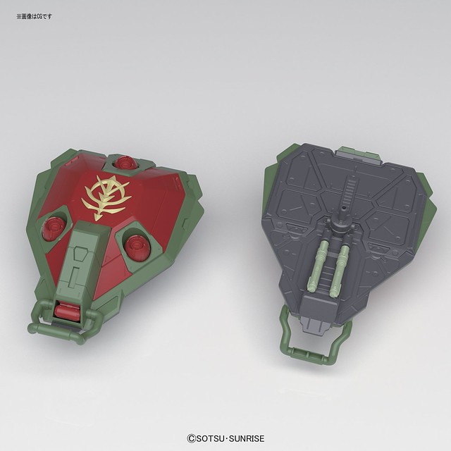 不過手臂部份使用了軟材質與鋁線構成,還原設定中展開手臂的機構,搭配上內附的4個台座就能再現全方位攻擊的場景!而盾牌上的「新吉翁標誌」也使用了完全分件,省去補色、遮蓋的困擾!