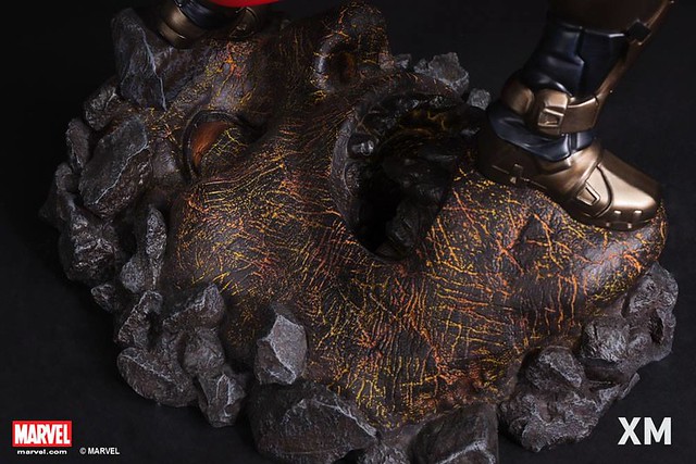 這次的作品採1/4比例,細節上依舊令人驚艷!延續上次「鐵拳俠」的設計,可以推測有兩個姿勢可以替換,穿著經由「雷神之力」認可所賜與的服裝,在頭雕方面相信XM Studios下了許多功夫,面部肌肉、帶著馬形狀的嘴巴,真的超逼真啊!值得一提的是金色的錘子「風暴毀滅者」,看起來就比雷神之鎚厲害啊(誤~~,這位馬面雷神,相信也是許多美漫迷心中不能錯過的收藏啊!