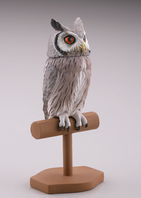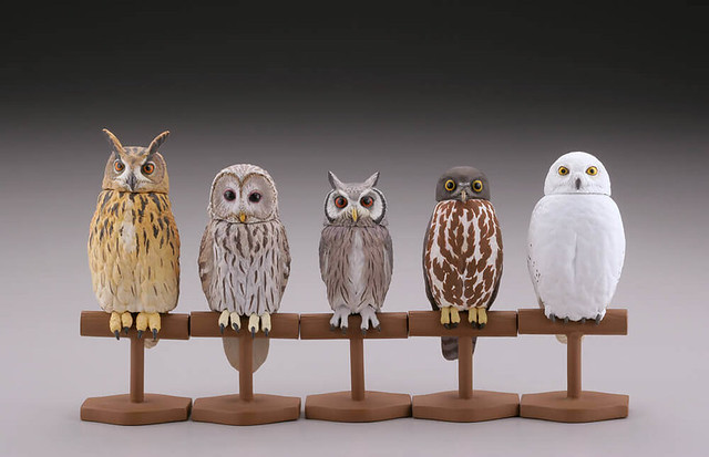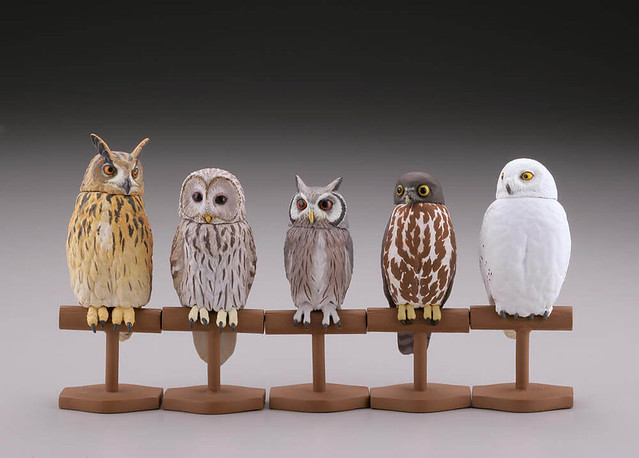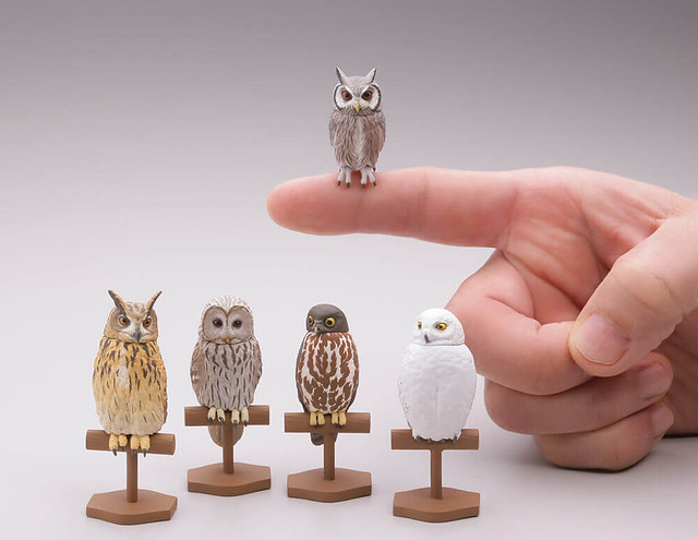 貓頭鷹大部分的種類都是夜行性的肉食性動物,是「鴞形目」的鳥類有超過約130個種類,在亞、歐、澳洲等等都有牠們的生活分佈除了南極洲之外,都可以看見貓頭鷹牠們的活動蹤跡,此次將預計收錄約有五種類的貓頭鷹,每款貓頭鷹的脖子一樣設計可以轉動的關節,喜歡《膠囊Q博物館》系列產品轉蛋的玩具人可以參考一下歐!