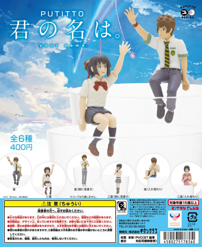 日本知名玩具品牌奇譚俱樂部旗下超人氣的「PUTITTO」系列,除了人氣偶像「杯緣子」外,也與各式各樣的動漫主題結合,這次將以超人氣的日本動畫電影《你的名字》(君の名は。) 為主題推出杯緣玩具,預計於2017年7月發售!!