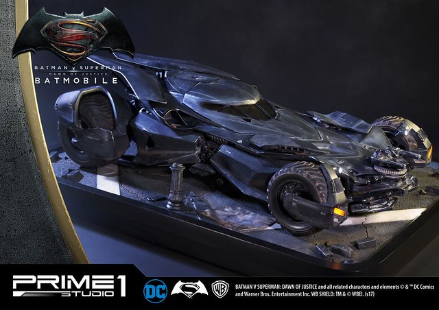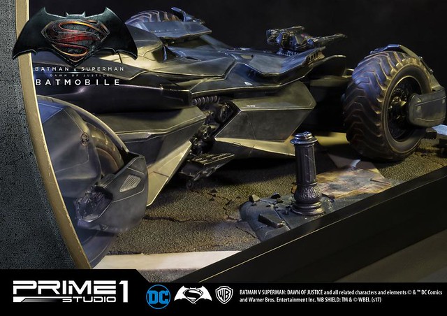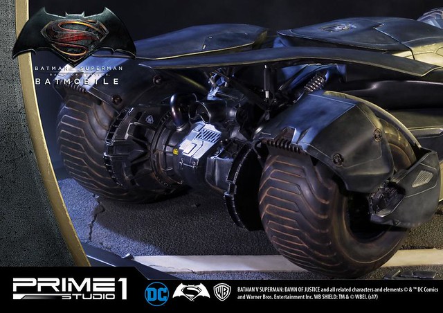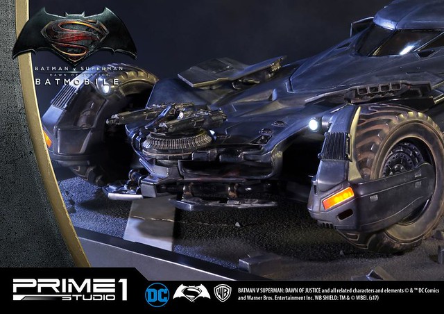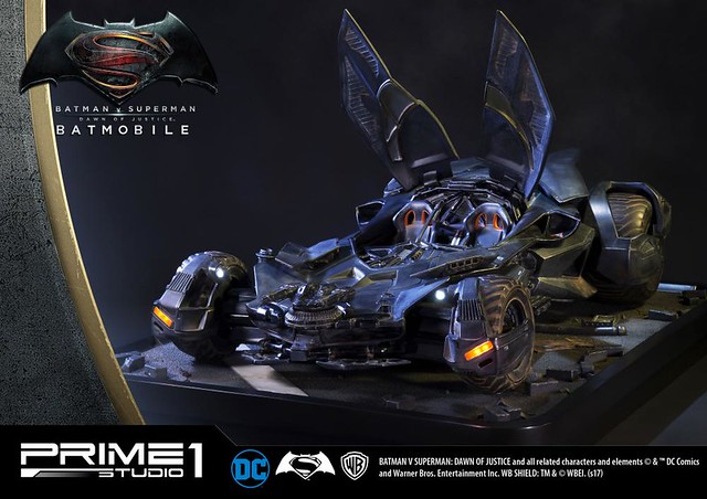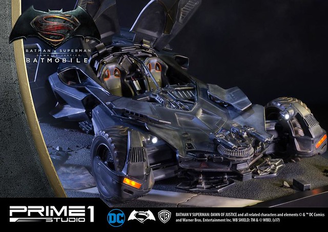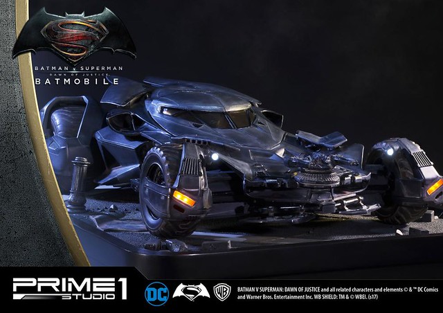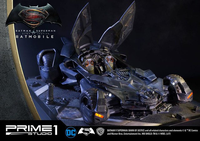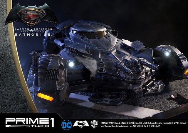 日本知名雕像品牌Prime 1 Studio 公司,其作品以超大尺寸的魄力與細膩的雕刻技術著名,繼蝙蝠俠、超人的1/2 比例超大雕像之後,又要推出在《蝙蝠俠對超人:正義曙光》中出現的「蝙蝠車」雕像作品,預計在2018年5~7月發貨!