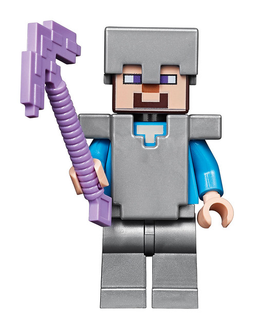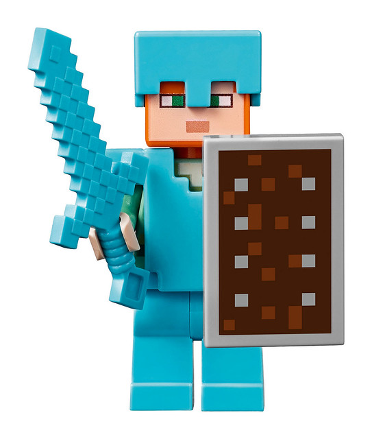 這款LEGO 21137 Mountain Cave 主體山洞的地形包含了頂部積雪、礦車、動物等元素,除了零件爆炸多高達2863 件之外,可玩性也非常強,礦車的軌道可以一路從山頂往下滑相當過癮,山洞中的通道也很精彩呢!角色和動物更是份量十足,主角Steve 身穿鑽石裝以及新的盾牌、Alex 則是鐵裝,怪物有殭屍、小編超愛的骷髏弓箭手,被閃電擊中的「高壓苦力怕」真的超可愛的啊~