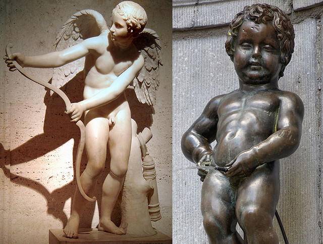 ▼ 左為羅馬卡比托利歐博物館中的「邱比特雕像」,右邊是布魯塞爾市中心的地標「尿尿小童」。
