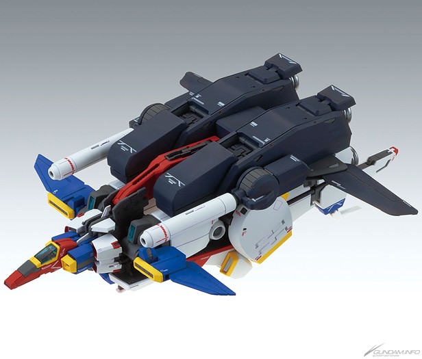 萬代釋出開發中 CG 與商品資訊,「MG 1/100 ZZ鋼彈 Ver.Ka」將最讓人期待的核心戰機「合體.變形」系統能夠徹底時,同時也在造型與結構強度上取得平衡。合體完成後的ZZ鋼彈在肩部、膝部、腰部都以複雜的多重關節製成,能在維持變形機構的情況下保有高可動性!在CG圖上看不出來,但實品確定會有部份零件採電鍍上色,提昇整體厚重感!