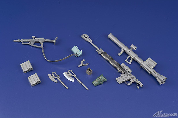 「HG 薩克II C型/C-5型」也承襲的此系列的優點,從成形色、可動到裝甲刻線都忠實再現了動畫中的原貌,尤其是這安心的薩克綠讓人忍不住大喊「吉翁萬歲」!套件中還附有兩種造型的胸甲與背包,可以隨喜好替換成「C型/C-5型」兩種樣式。武裝更是比先前推出的夏亞專用薩克還豐富,包含了「薩克機槍(附彈鏈)」、「熱能斧」、「MS專用火箭炮」、「對戰艦步槍」!