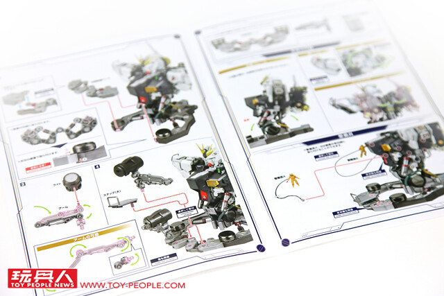 ▼ 內附有一張全彩的說明書,詳細地說明了所有的配件數、可動部位與注意事項,開始之前請務必詳閱!