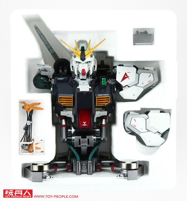 ▼ 來欣賞一下組裝完成的帥氣造型吧~ 基於ν鋼彈原始的造型設計,導入了逼真的造型細節,並且還導入了多重的顏色層次來增加造型深度,以及使用了透明零件、合金零件與大量的金屬色塗裝,來為造型整體增添真實感與高級質感,全身大量的造型細節情報,光是欣賞造型就能看上許久!