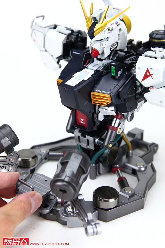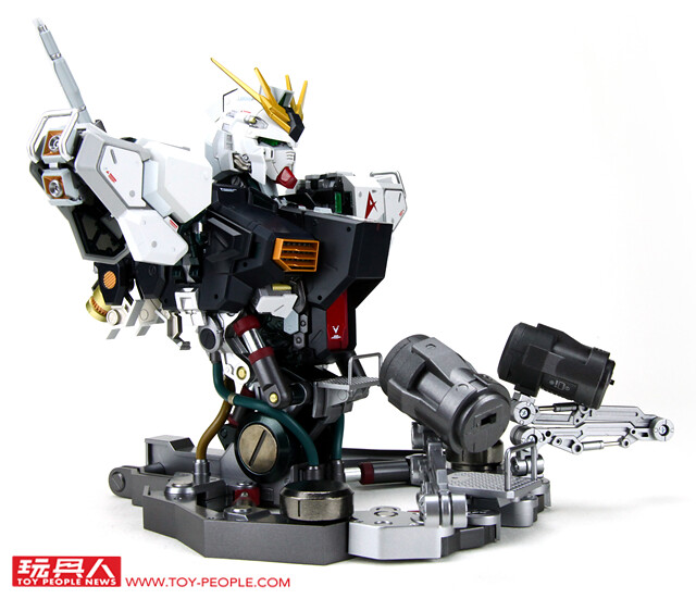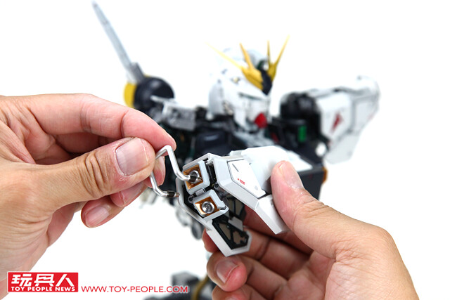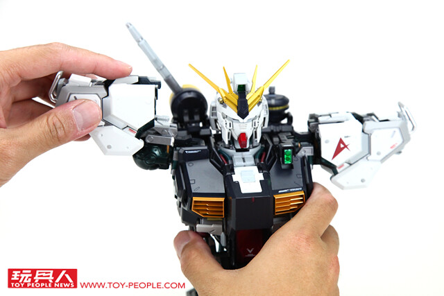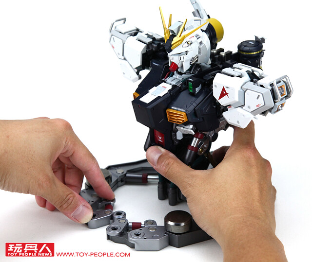 ▼ 不過「FORMANIA EX ν鋼彈胸像」可不是趕工之作,出廠時的造型已經具備了極高的細緻度與完成度,只需要簡單組裝就能夠輕鬆完成。 首先將合金支架裝於兩側肩甲上。
