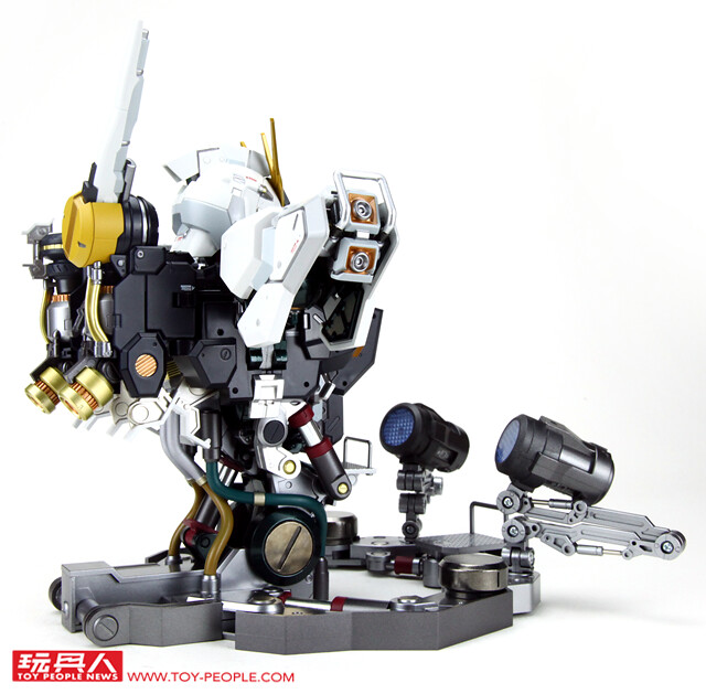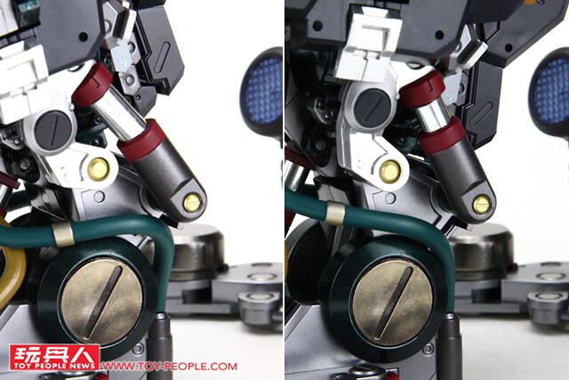 ▼ 機體本身與底座之間以一個相當高強度的合金關節連接(機身與底座間的墨綠色與黃銅色部分為關節)。
