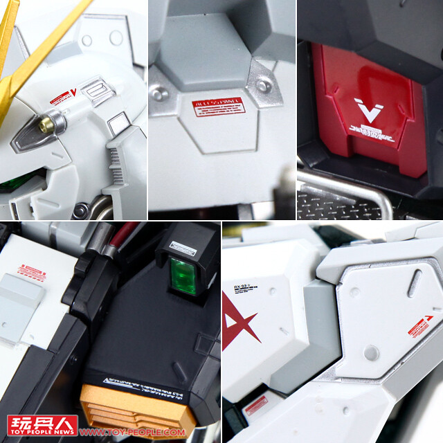 ▼ 不僅是造型與塗裝具備了極高的完整性,機體四處也裝飾了充滿細節的裝飾貼紙,讓整體的造型更加複雜、寫實,如果真的叫做「Hi-S鋼彈」或「Hi-C鋼彈」的就看不到這些帥氣的「ν」字了!