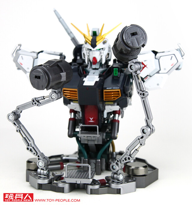 ▼ 以及轉動角度。 這樣的可動性彷彿就像是一具未完成的ν鋼彈在工廠整備的狀態! 能夠讓各位玩具人依據個人喜好來調整造型。