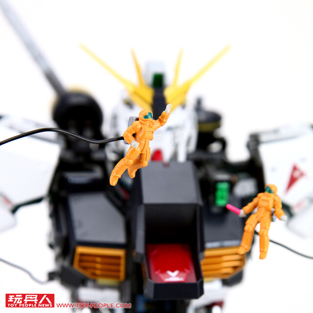 ▼ 另外,本作附屬了兩個太空維修員人偶,並將隨身的纜線使用軟性的鐵絲製作,能夠彎曲為各種形狀,模擬出在太空中無重力的整備場中漂浮工作的模樣。