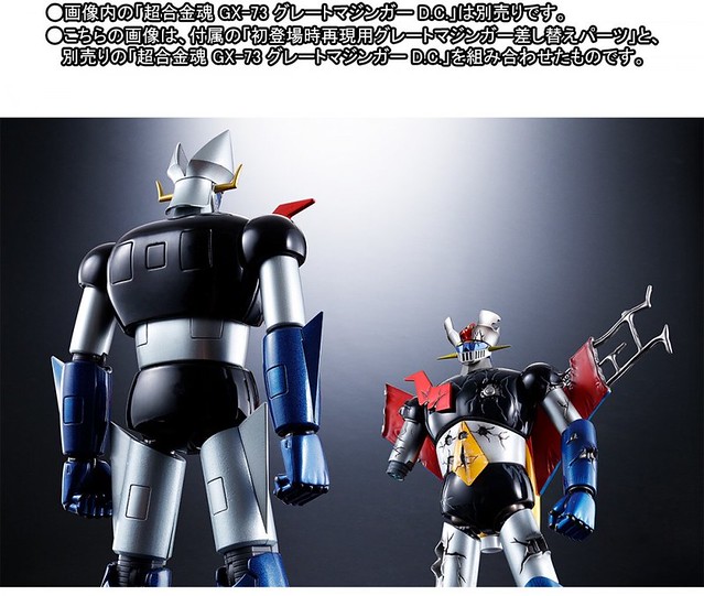 2017年6月22日新增官網宣傳照片與販售資訊,有在收集"超合金魂系列"的玩具人絕大部份的玩家都是喜愛「合金材質」拿在手上的重量感,這次廠商也特別先行公開這次無敵鐵金剛 D.C.戰損版本機體的合金材質部份,除了頭部、肩甲、腰與手臂連接肩前緣的位置,幾乎整個身體以及四肢等等都"用料實在",當然這也就反映在售價上面了,還附有劍持ち用左手首、初登場時大魔神的替換零件以及專用台座等等多款豐富配件。
