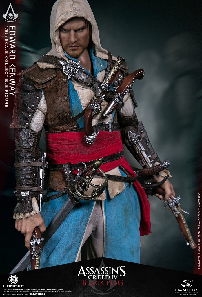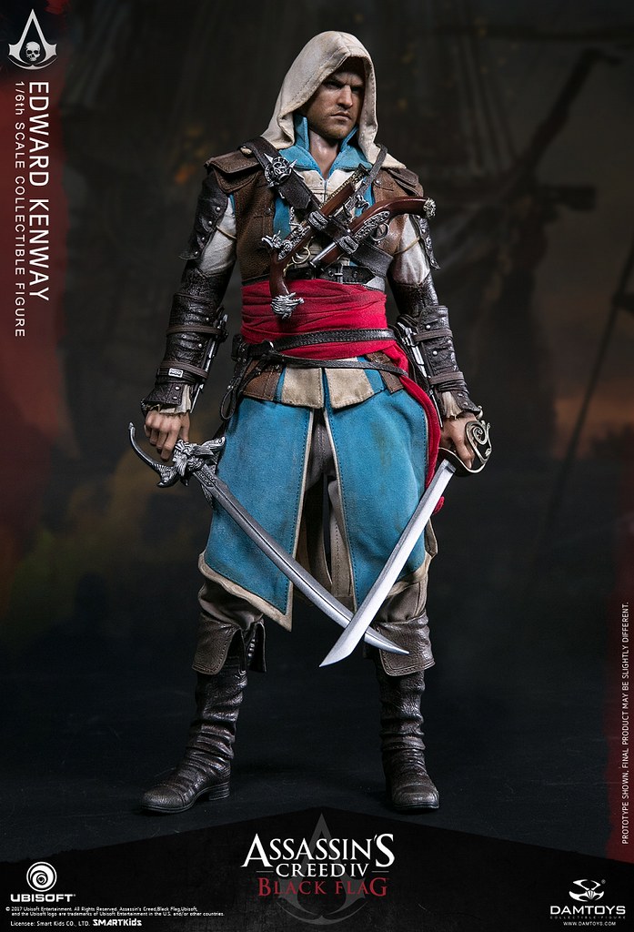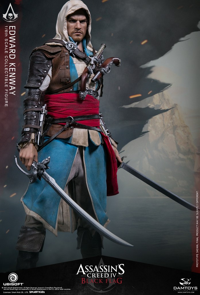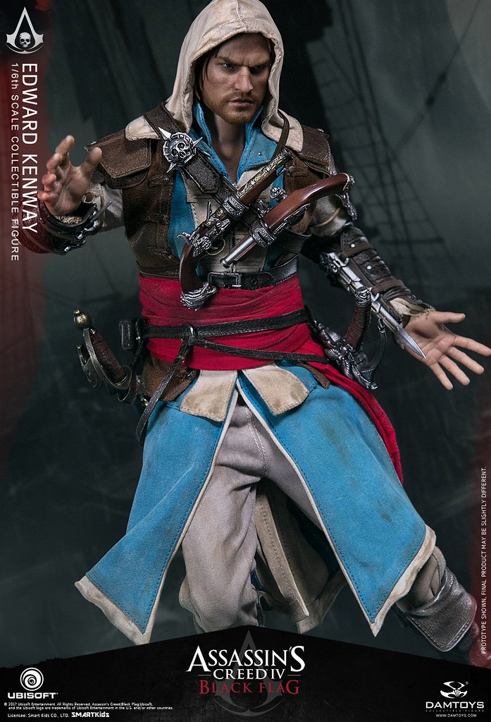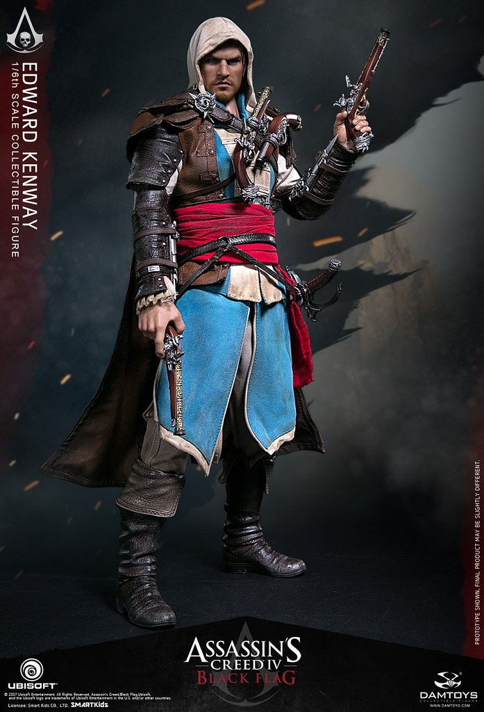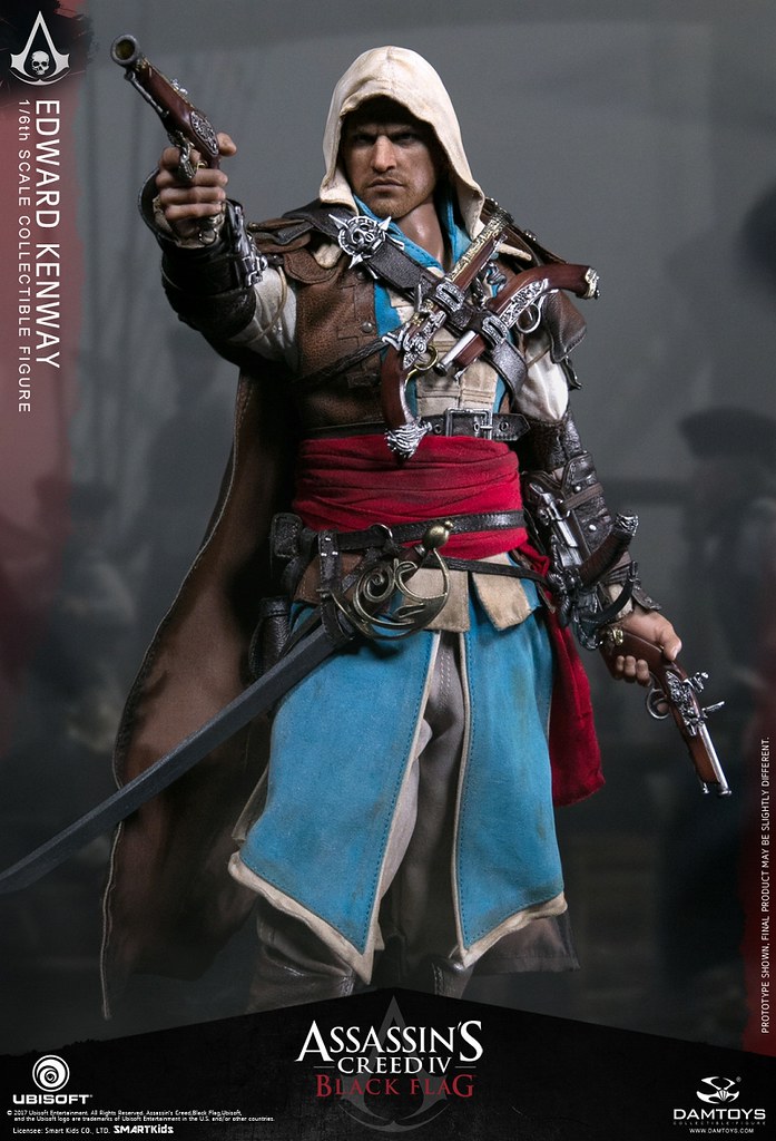 知名玩具品牌DAMTOYS 公司旗下暢銷熱賣的1/6 比例人偶作品系列,繼黑幫王國(Gangsters Kingdom)紅心3 巴特萊、紅心2 班森後,要以知名電玩遊戲《刺客教條IV:黑旗》主角「愛德華.肯威」(Edward Kenway )為主題推出全新的1/6 比例人偶作品,預計2018年第一~第二季發售!!