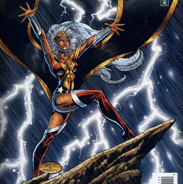 在90年代的時候,DC與漫威合作推出一個混合宇宙的品牌,其中暴風女是戴安娜的養姐妹,甚至在最後暴風女取代她而獲得成為神力女超人的資格,這導致混合宇宙的戴安娜之後變成類似制裁者的英雄。