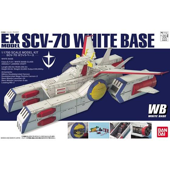 日BANDAI萬代玩具公司早在2010年推出過"EX模型 1/1700比例尺寸的白色基地"塑料作品(EXモデル 1/1700 ホワイトベース プラモデル),艦後部份推進器重現劇中可拆卸的設計,可以看見後置發動機內部的結構細節等等,白色基地前面起落架艙門也可以打開或是關閉狀態,以及附有初鋼、鋼坦克(ガンタンク)、機動火炮(ガンキャノン)、核心戰鬥機等等1/1700比例尺寸,還有個固定式的支撐台座,之前錯過此款作品的玩具人可以參考這次的再次販售歐!