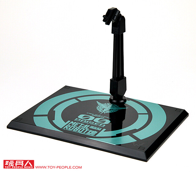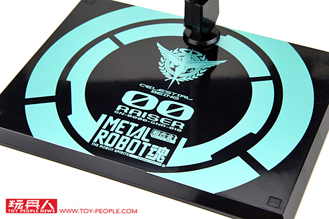 ▼ 底座是以黑色基調再搭配上 GN 粒子的綠色,上面的圖樣由天上人的標誌、機體型號與「METAL ROBOT魂」品牌LOGO組成,