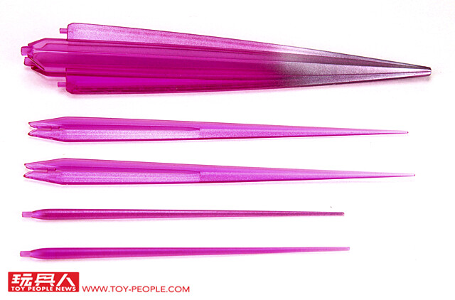 ▼ 光束刀刃特效零件,不只是使用一般常見的粉色透明材質製作,同時還施以金屬配色來增添閃亮的質感,再現劇中充滿魄力的效果!