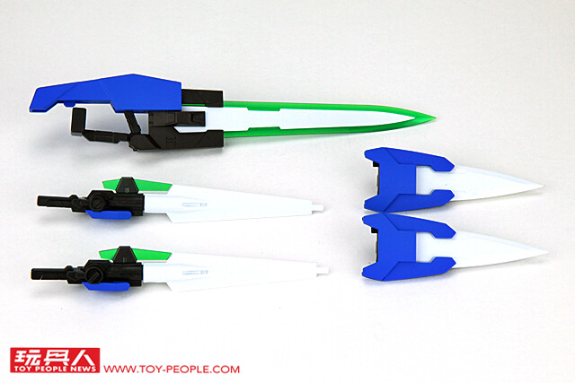 ▼ 武裝包含了「GN劍III」、兩把「GN劍II」以及「GN盾牌」。GN劍II的水晶傳感器與GN劍III的劍刃同樣是使用透明材質製成,高透明度帶來相當漂亮的光澤,稍後就來一一介紹!