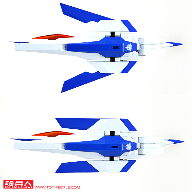 ▼ 從機體背面看上去更能清楚明白這次的合金零件使用量。背包上與0強化戰機的連接處採用了可掀式護蓋隱藏起來,看起來自然美觀。