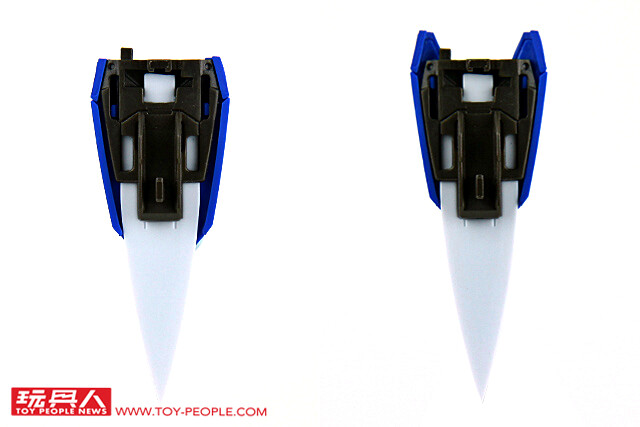 ▼ 兩把GN劍II的接頭採一體成形設計,能直接固定在兩側裙甲上。