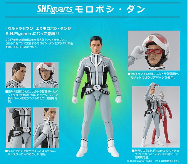 今年也是《超人七號》上映的50年週年,身為ULTRA警備隊的"諸星彈"這次搶先以S.H.Figuarts可動系列推出,他是真實身份就是「超人七號」,此次作品附有帶著警備隊的頭盔以及脫下頭盔的頭部配件可以替換,也附有特殊的變身裝置「超人之眼(ウルトラアイ)」,其警備隊配戴的武器槍(ウルトラガン)還可以放置腰間的套子收納,對《超人力霸王》系列有興趣的玩具人千萬別錯過了啊!