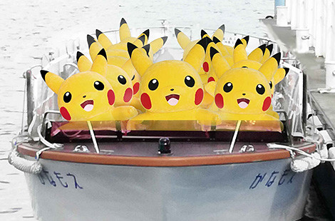 ▼ 搭船現身的皮卡丘們。