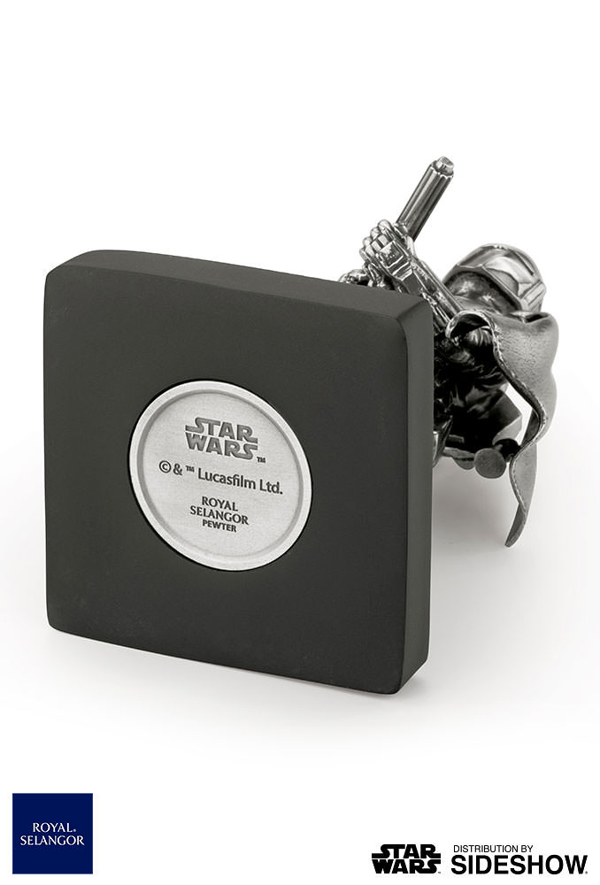本作由馬來西亞錫鑞生產及零售商皇家雪蘭莪(Royal Selangor)生產,原色的白蠟在盔甲的戰損、傷痕呈現都非常高超,形成超豪華的獨特質感,帥氣的「曼達洛」(Mandalor)頭盔、肩上的絕地髮辮都相當細緻;比起限定版黑武士,這款波巴.費特尺寸更為小巧,但該有的細節一點也沒少,是富有質感的袖珍型收藏啊~