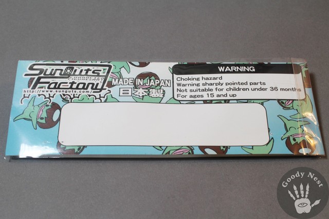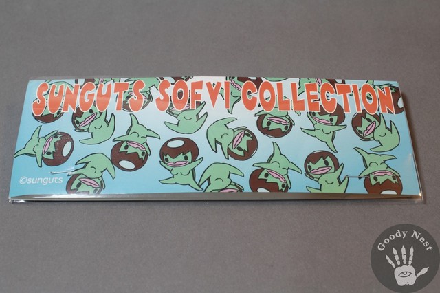 頭卡正面,用俏皮的橘色字體大大的標上了SUNGUTS SOFVL COLLECTION,背景佈滿了貴公司另一個系列角色河童的可愛圖像。雖然不太理解用另一個系列角色當頭卡的設計概念是什麼,但非常可愛就不管了 (自己看,是你追究得下去嗎?