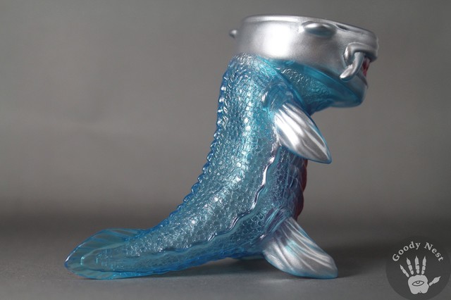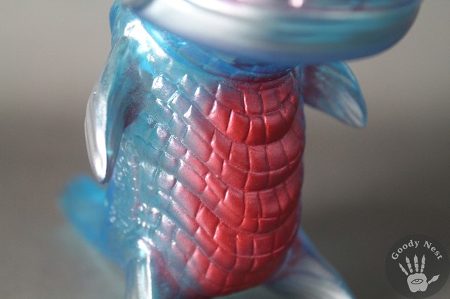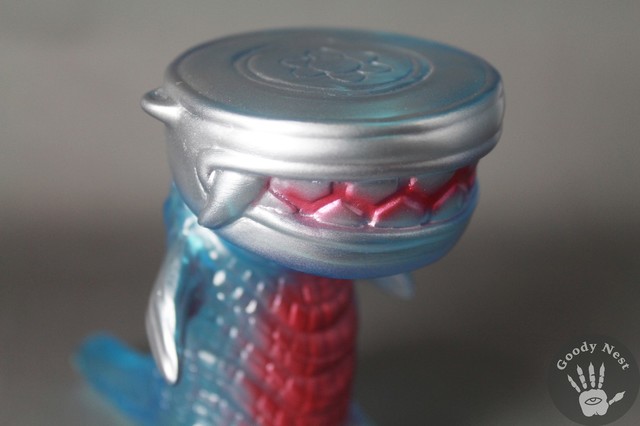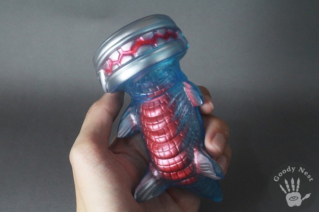 軟膠材質為淡藍色的透光材,透過光線,更增加玩賞時的可能性。頭部與四肢以銀色為主要刷色,嘴巴與肚子以乾燥玫瑰般的紅色輔助,紅色讓怪獸看起來更有活力,特別是血盆小口更增添了野性及獸性。