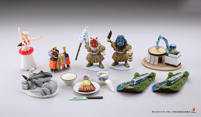 在山形會用6公尺的大鍋子舉行"日本第一煮芋頭會嘉年華(日本一の芋煮会フェスティバル)",在秋天的季節把芋頭、牛肉、魔芋、蔥放進6公尺的大鍋子,並使用怪手機來攪拌材料烹煮,這次也將特殊的"芋煮會"完整呈現!日本青森縣的大間漁民擅長捕釣黑鮪魚,皆以聲納追埔魚群動向,並被日本電視台拍成影集,這次也特別收錄「大間的鮪魚(大間のマグロ)」,日本自古以來以馬、牛等家畜來幫助務農,為了感謝馬兒們的辛勤勞動特別舉行的大型祭典「叮鈴叮鈴趕馬會(チャグチャグ馬コ)」,「叮鈴叮鈴(チャグチャグ)」指的是"鈴聲",每款都有日東北各縣特殊風土民情的含意,喜愛海洋堂精緻轉蛋作品的玩具人可以參考一下歐!