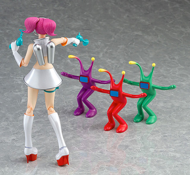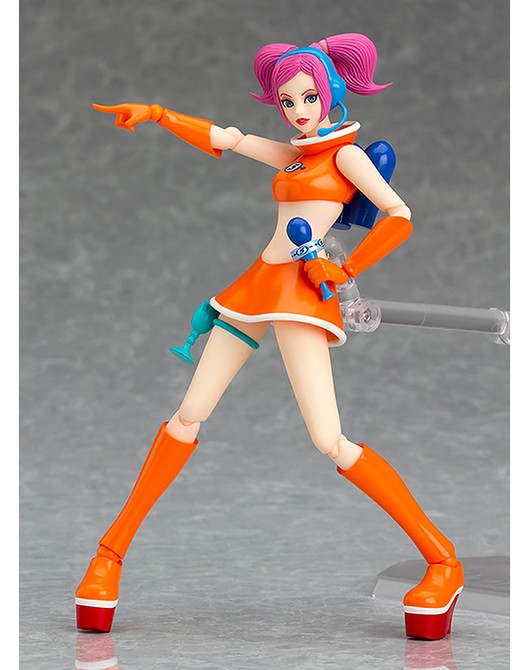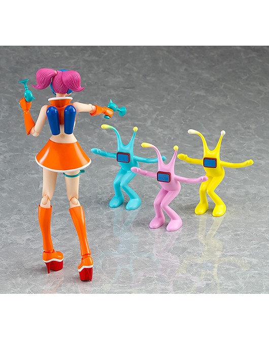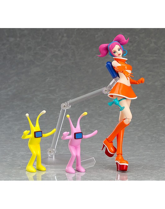 這次Figma可動系列將推出音樂和舞蹈的動作節奏遊戲《太空頻道5號》當中「舞菈菈(うらら/Ulala)」(名稱暫譯)的"歡樂白色版本(うきうきホワイトver.)",此次舞菈菈的眼球採用可移動設計,能根據動作來調整視線的角度,此作內附有「麥克風」、「槍」等等配件,另外還有各有紅、綠、紫三款配色的舞蹈軍團「摩洛星人」,另外還有「心動橘色版本(どきどきオレンジver.)」是會於GOODSMILE Company線上商店限定販售,喜愛《太空頻道5號》電玩遊戲的玩具人可以參考一下歐!