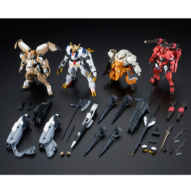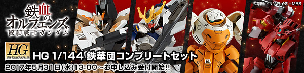 由日本BANDAI萬代玩具公司發行的眾多「鋼普拉」系列商品中,機體種類最為齊全並還原動畫中形象的「HG(High Grade)」系列,近日公開將推出《機動戰士鋼彈 鐵血的孤兒》「鐵華團成員機體(鉄華団コンプリートセット)」,一口氣收錄有「天狼王型獵魔鋼彈(ガンダム・バルバトスルプスレクス)」、「智魔鋼彈重鍛開鋒型(ガンダム・グシオンリベイクフルシティ)」、「蔽魔鋼彈(流星號)ガンダム・フラウロス(流星号)」以及「蘭多曼·羅迪(ランドマン・ロディ)」四款人氣鐵華團成員所使用的機體。