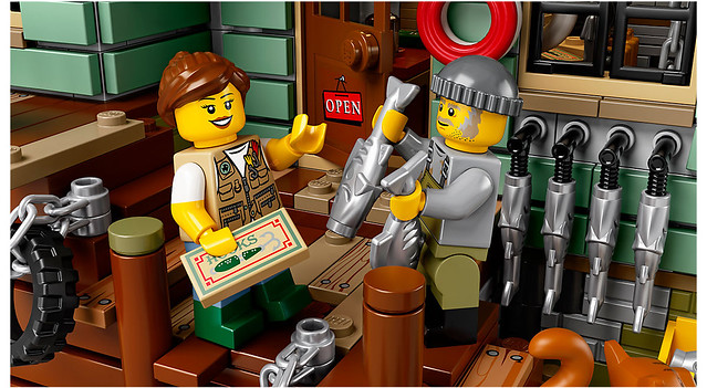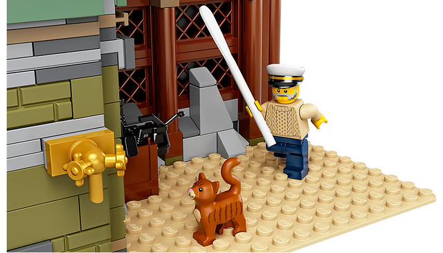 相較於以往的「街景建築」,這組老漁屋低調許多,帶給人寧靜、悠閒的氛圍,因為以往的街景建築都設定在都市裡,熱鬧、光鮮、繽紛的色彩是主要元素。LEGO 21310 老漁屋有4 個人偶,動物部分包含海鷗、龍蝦、魚等等,燈塔和釣具店可以由上方掀開,令小編非常興奮的是釣具店後方可以側開,裡頭的裝潢、擺設一覽無遺,也增加了可玩性,但最吸引人的是綠色、咖啡色的搭配,滿滿的懷舊風情~這組小編一定要收的啊!!