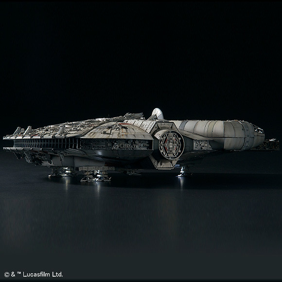 「PERFECT GRADE 1/72 千年鷹號」以打造出 1.7M 攝影用模型為目標,在全長 48.2 公分的大型尺寸中加入極度細膩的模組,像是駕駛艙內的儀器、部份機內管線、機體外部的刻線與戰損痕跡等細節都毫不保留地賦予進去。同時設置數組白色 LED 燈模組,不論是駕駛艙、起落架、甚至是超空間引擎都能透過LED燈表現!