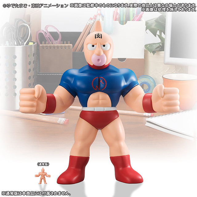 日Bandai萬代玩具公司之前以復刻橡皮擦材質的小尺寸人偶作品,推出過「序章的巻」、「正・悪・完璧大乱闘之巻」以及「感淚的珠玉超人大亂戰之巻」之後,這次將以超級大尺寸來推出「超級角色橡皮擦 金肉人(全彩色版本)超デカキンケシ キン肉マン(フルカラーVer.)」(名稱暫譯),也是"橡皮擦人偶(キンケシ)"史上初次有如此巨大的作品啊!