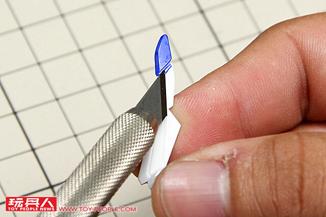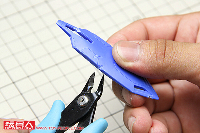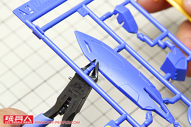 ▼ 第一步驟當然是基本的第一段剪裁,注意刀刃要遠離零件,留下大約1mm左右的湯口。