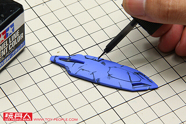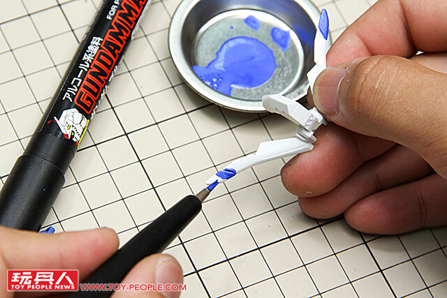 ▼ 將麥克筆的顏料擠出置於碟子上,再用圓頭筆沾取,進行補色。這要操作會比直接使用麥克筆去塗裝還要容易控制筆觸喔~