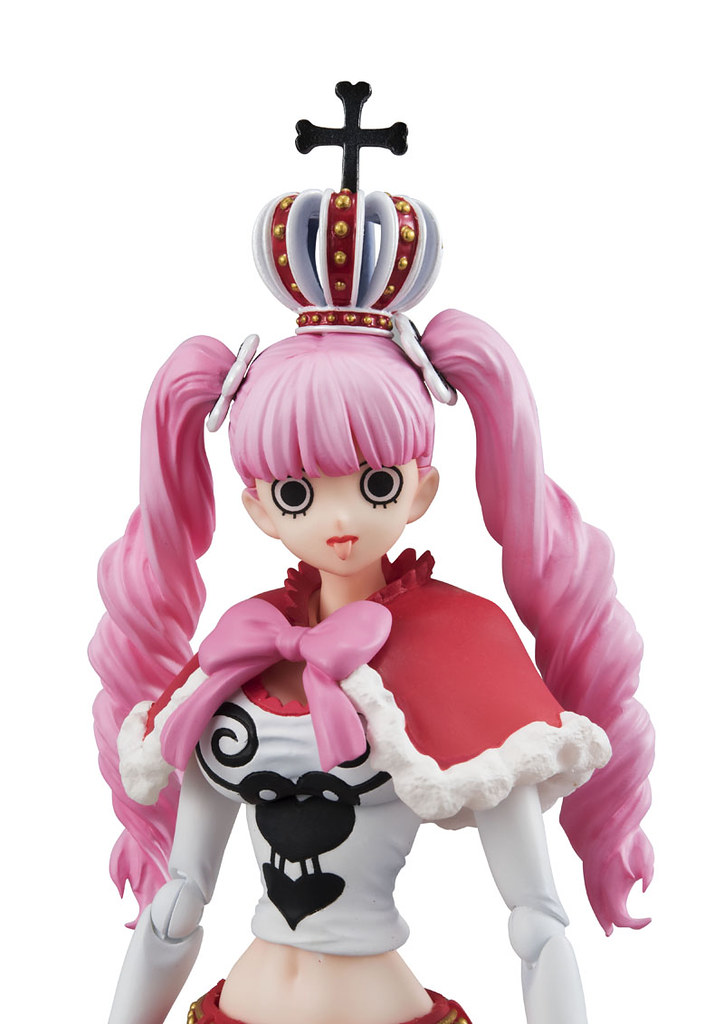 在《航海王》故事當中的「培羅娜」ペローナ是在「恐怖三桅帆船」(スリラーバーク / Thriller Bark)登場的四怪人之一,她是吃了超人系果實「鬼魂果實」能力者,外觀是以可愛蘿莉的造型出現,在童年時期「培羅娜」的造型也是綁著雙馬尾、戴著小后冠、身穿粉紅色的小洋裝、一手拿著裝飾有圓眼睛和惡魔尖角的傘、以及一手拎著一個幽靈布偶,這次則是以成年初登場的模樣來可動商品化。