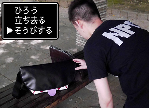 以 RPG 為題材的 Itemya 系列這次將各大遊戲中最具知名度同時也是最危險的陷阱「寶箱怪(ミミック)」與輕便的郵差包結合,製成兼具「個性」與「實用性」但不具危險性的「寶箱怪郵差包」!