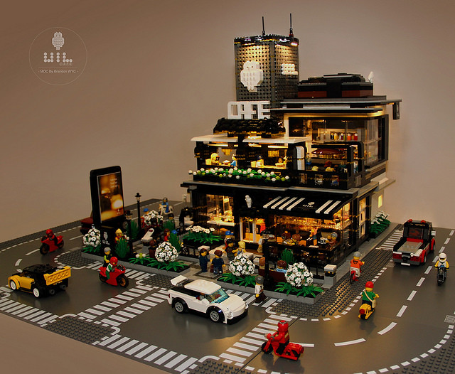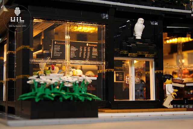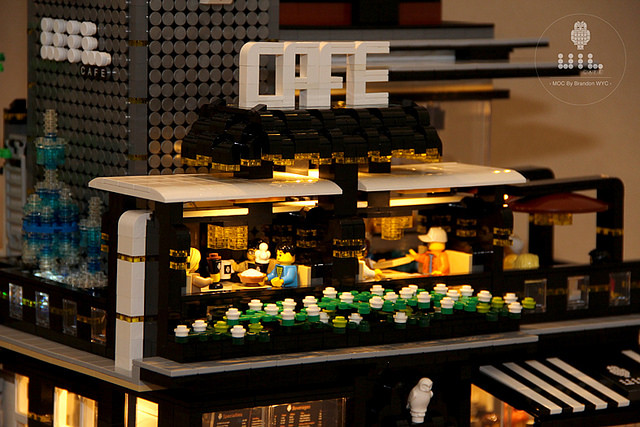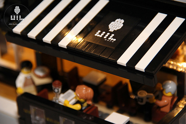 這個超有質感的UiL Cafe 來自於Brandon wyc,他的Flicker 相簿中有非常多驚人的樂高MOC 作品,這個咖啡廳最厲害的就是具備許多特殊的「發光磚」,搭配露天座椅、大量的窗戶設計使整座咖啡廳非常明亮,真的超有氣氛的啊~下班後去這種店裡喝杯咖啡、吃塊蛋糕,感覺超級幸福der~